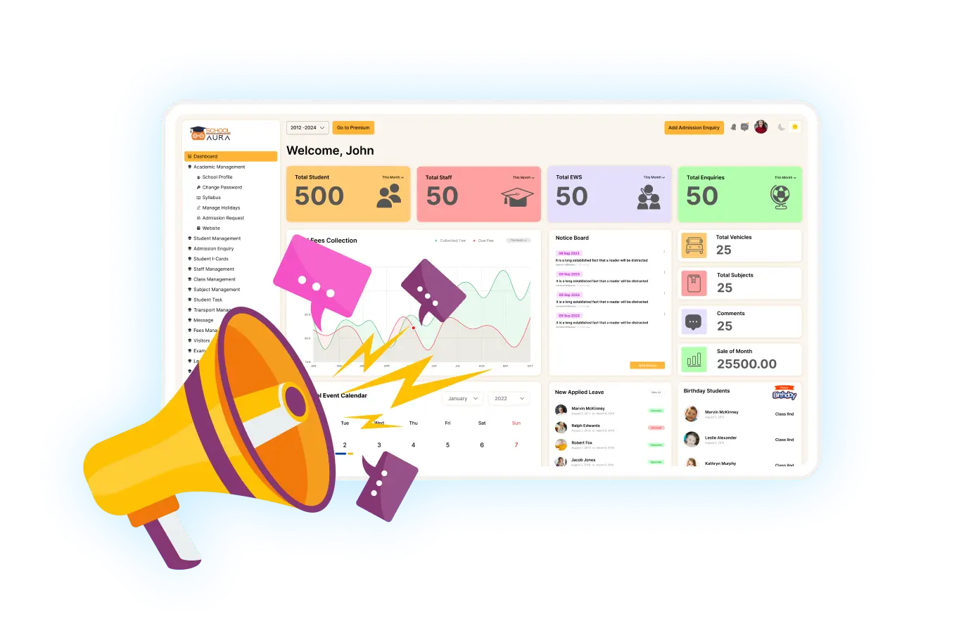 Promoting and branding becomes the most important activity in the modern times when there are enormous numbers of school openings. The level of education and excellence a school is delivering should be noticed by the parents. Thus, it is important to promote the school in an efficient manner. With the SchoolAura software system your school will be promoted with the best possible manner reaching to the maximum crowd engaging the required people.