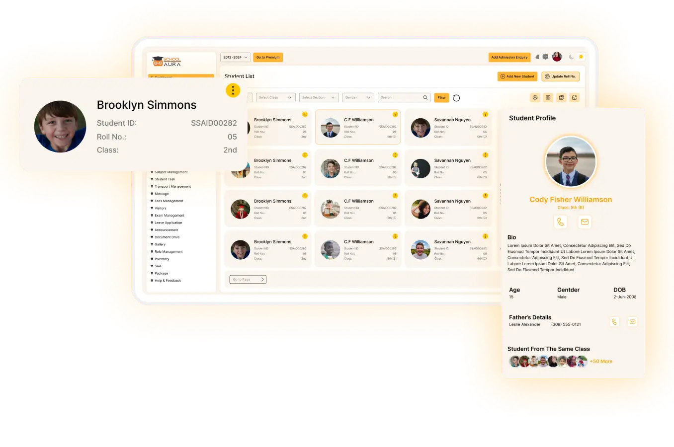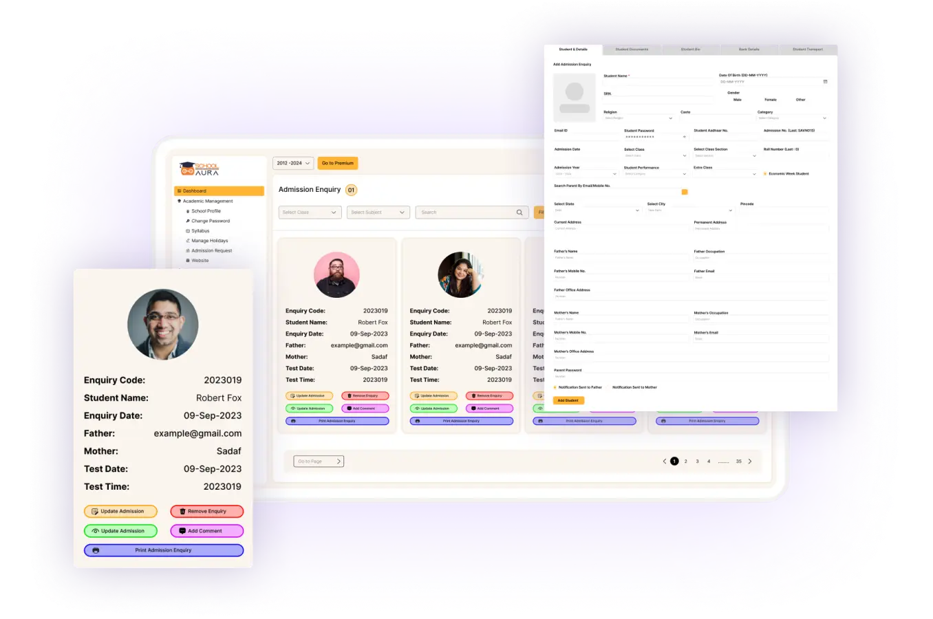 Student management system is referred to the key while managing all the operations and tasks. SchoolAura provides an end-to-end online student information system in a streamlined, customized, simplified and engaging student experience all at once. In the class, it becomes difficult for the teachers to keep an eye and track the activities of each and every student. If all the information can be displayed at the single place then it will be easy to access and monitor the performance of an individual. Teachers can focus on the weak topics and difficulties faced by the students. It will be helpful in enhancing each individual’s performance. It will be easy to maintain and update the student’s record.